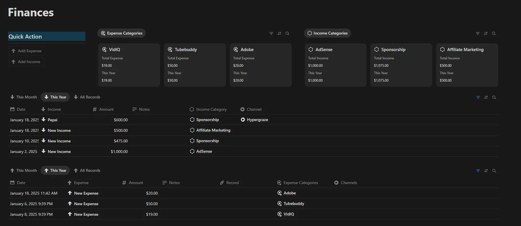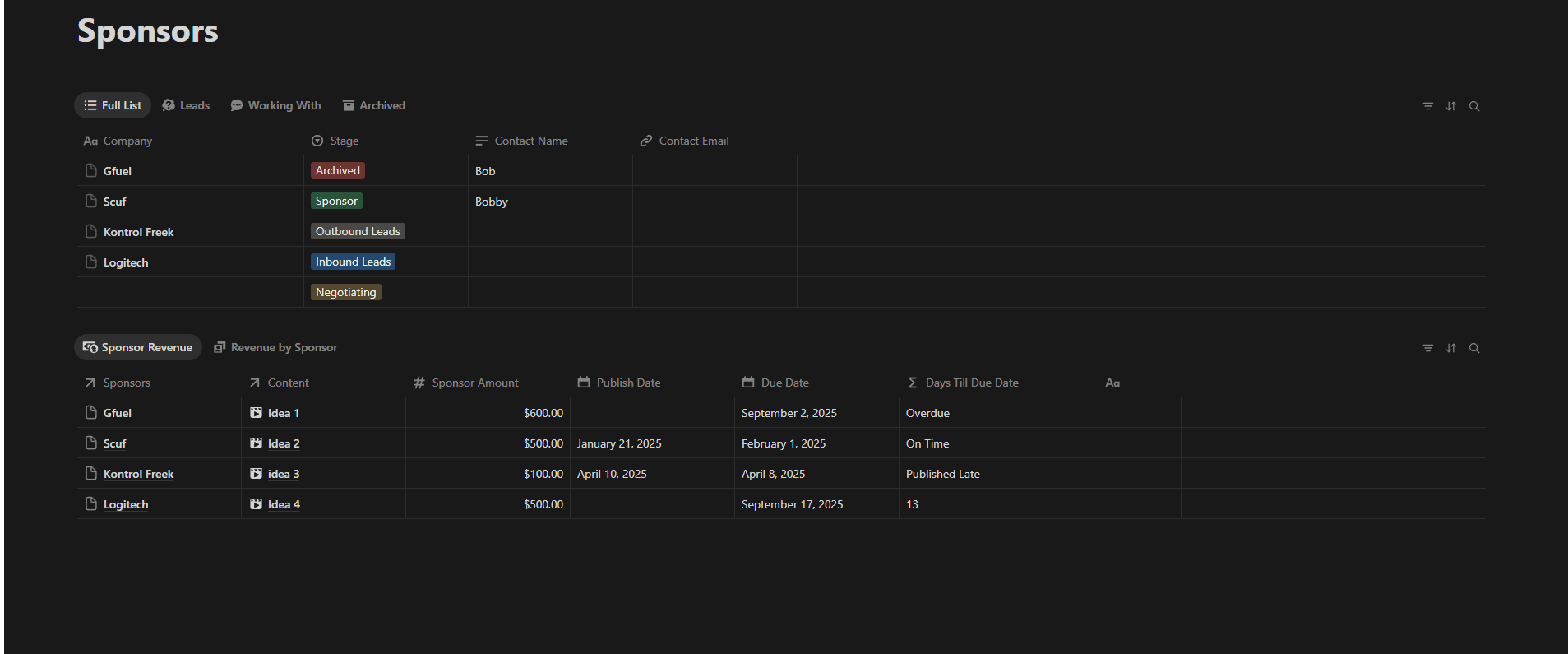 Easily manage your expenses, income, and sponsorships so you always know where your channel stands.